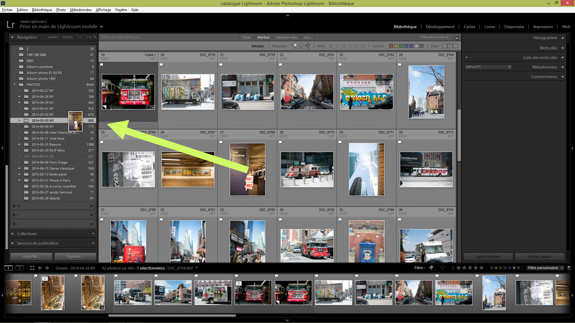je n'arrive pas a classer mes photos.j'ai crée un dossier avec un nom et au lieu de se rajouter sur le coté,tout a disparu ! quand j'ouvre a nouveau lightroom,je tombe sur une nouvelle fenetre au nom de mon dossier et rien dedans! merci
